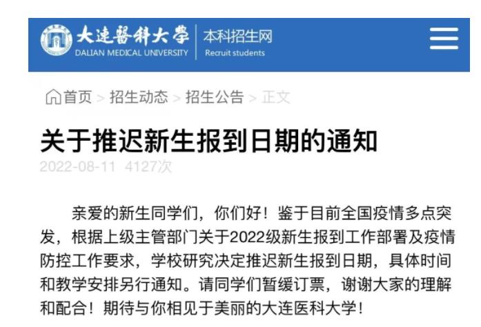 推迟新生报到日期,具体时间和教学安排另行通知。