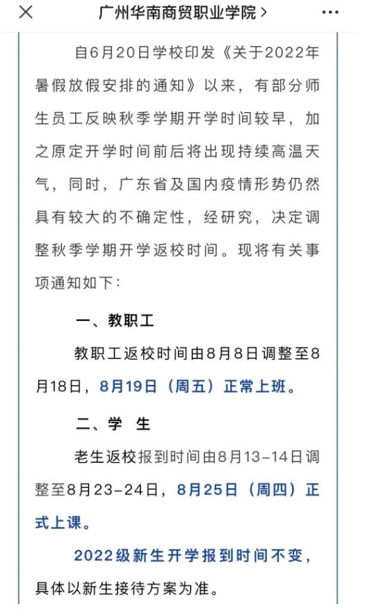 教职工返校时间调整至8月19日,老生返校报到时间调整至8月23日-24日